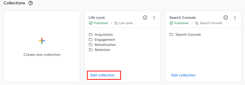 <div class="post-note">You need to choose a GA4 report collection where you want to add your new Landing Pages report. I think it makes sense to choose Life Cycle > Engagement alongside the Pages and screens report, but you can choose any collection.</div>